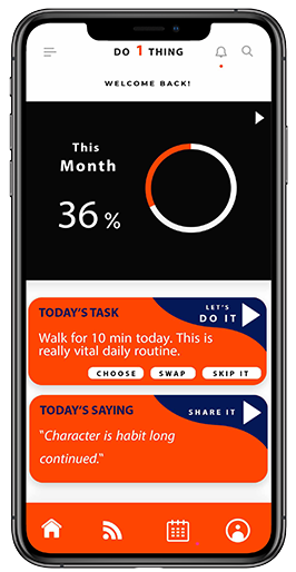 DO 1 THING is a journey to reset your habits. Do1thing is a science-based app, that will help you build healthy rituals into your life, just like an elite athlete.